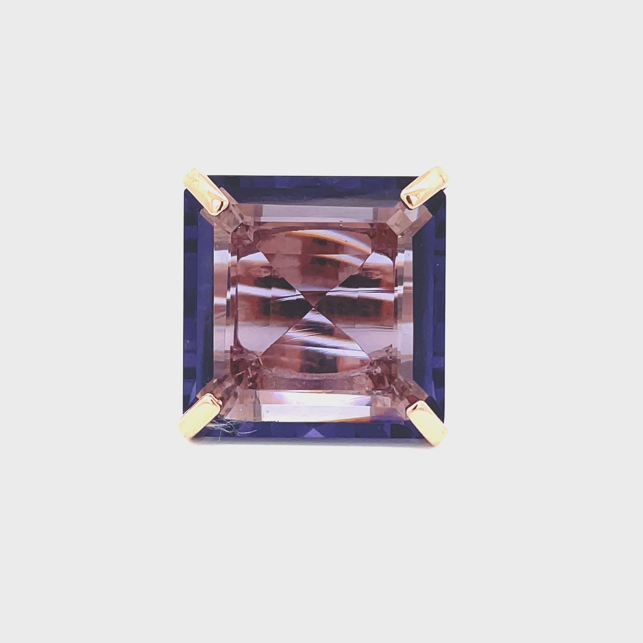 Roségoud vergulde statement ring, voorzien van een grote amethist paarse zirkonia.
