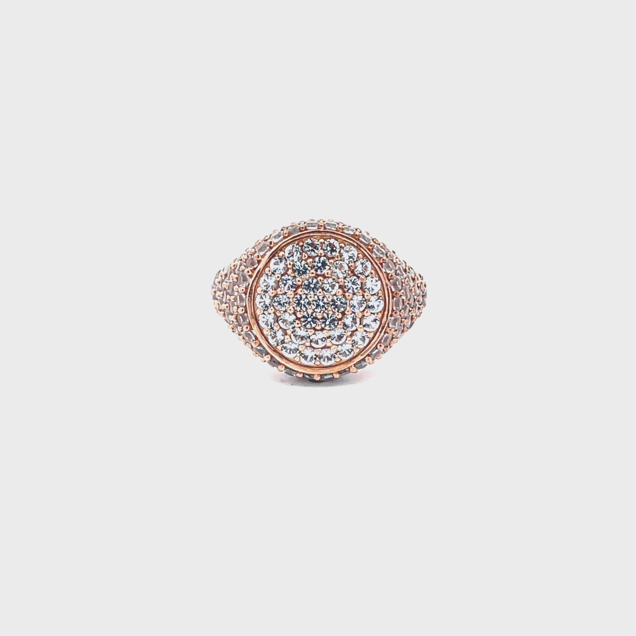 Rosé gold plated pinky ring, top and sides adorned with white zirconias.