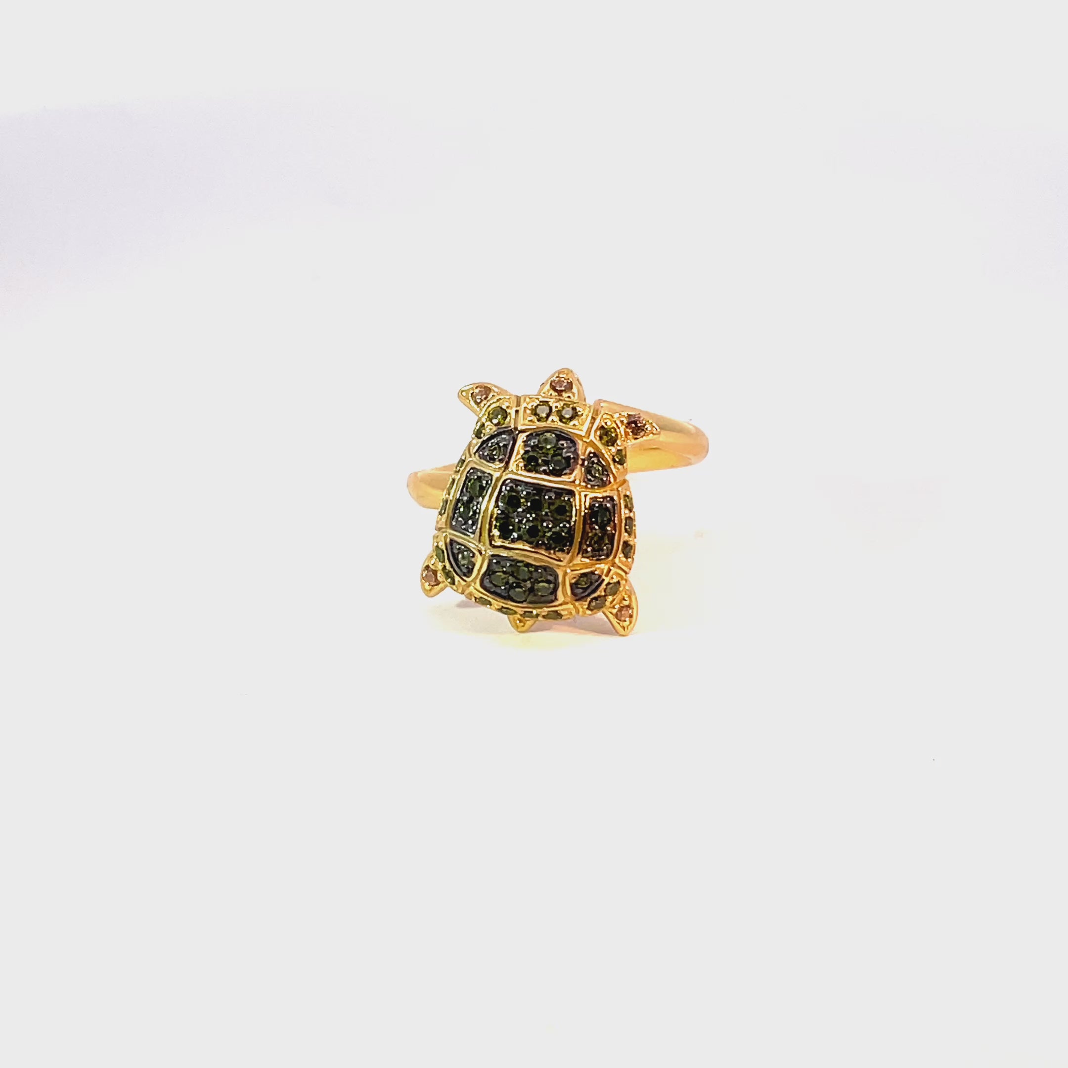 Discover the whimsical charm of this turtle-shaped ring, crafted with intricate detailing and adorned with sparkling gemstones. Its unique design makes it a perfect statement piece for any jewelry collection.